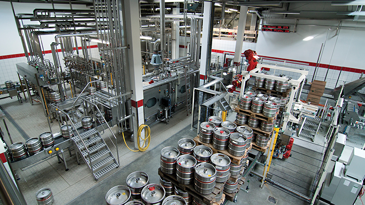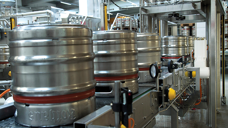 Modernisation of the plant also boosted filling capacity from approximately 120 kegs per hour to as much as 280. The filling line is fully automated; the only task that requires manual effort is supplying pallet stacks with 6 kegs on each pallet to the infeed using a stacker.