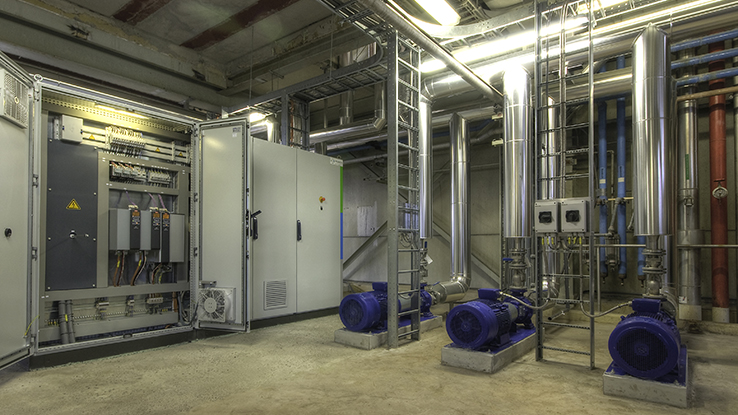 A Danfoss VLT® AQUA Drive with an VLT® Extended Cascade Controller MCO 101 was selected for efficient control of the pumps. An external 24V supply ensures that if the 400V mains fail, control circuits will remain powered-up and Profibus communication is selected to allow the SCADA system to monitor all data within the system.
