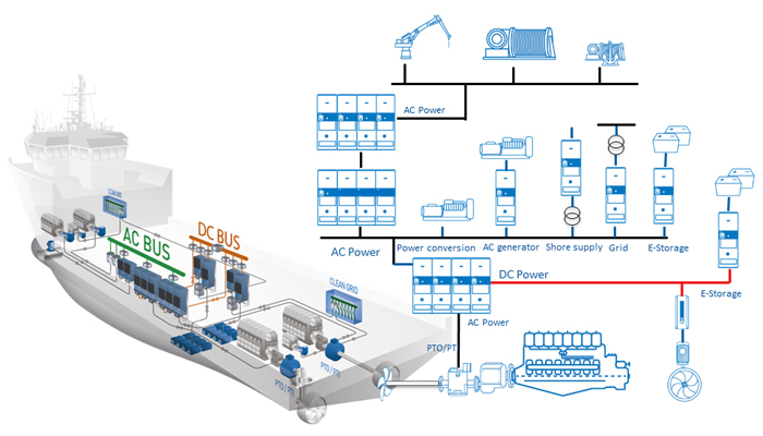 Generally speaking, the design of vessels with modern electric propulsion systems, either diesel electric, LNG electric or even fully electric, can be quite easily converted to a hybrid solution. In the best case, just by adding a parallel E-Storage system, a vessel can be operated utilizing battery power for example for peak power demand. In some cases, the optimum solution is to use DC power distribution instead of, or in conjunction with, traditional AC power distribution.