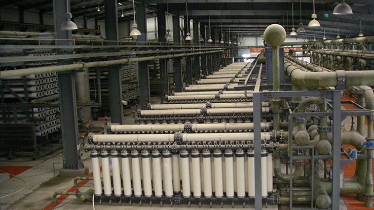 1.1 MW drives used for reverse osmosisIn order to secure high efficiency and the necessary pressure required in order for the reverse osmosis process to yield the best results, Danfoss VLT® AQUA Drives are specified for all the pumps in the plant. The drives are supported by VLT® Advanced Active Filters that keep harmonics at specified, low levels while offering much higher energy efficiency than using e.g. active front end technology.