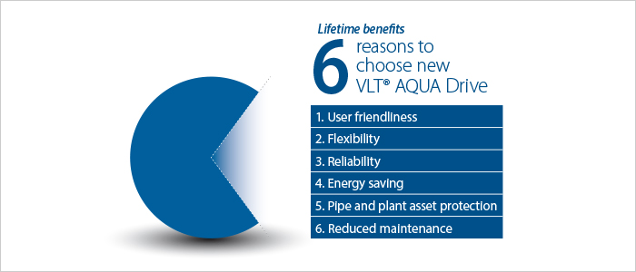Danfoss Drives was the first to introduce a dedicated AC drive just for the water industry. All the application knowhow being built up over the years has been integrated into the new VLT AQUA Drive and provides many lifetime benefits.